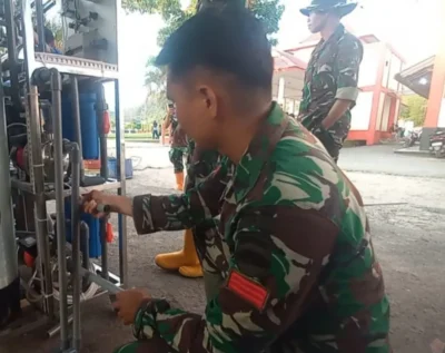 Jakarta – Satgas Penanggulangan Bencana Alam (Gulbencal) Kodam I/Bukit Barisan bersama Kementerian Pertahanan RI melaksanakan pemasangan alat penjernih air minum Reverse Osmosis (RO) di GOR Pandan, Kabupaten Tapanuli Tengah, Senin (22/12/2025).