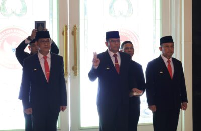 Prosesi pengambilan sumpah jabatan berlangsung khidmat dengan didampingi rohaniawan dan dilanjutkan dengan penandatanganan berita acara pengangkatan sumpah, pelantikan, serta serah terima jabatan.