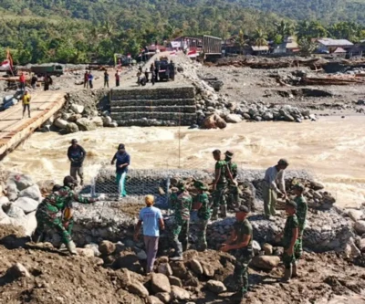Prajurit TNI dari Kodam Iskandar Muda dikerahkan untuk mempercepat proses pembangunan jembatan darurat guna mengembalikan konektivitas antarwilayah. Fokus pekerjaan diarahkan pada pemasangan panel jembatan, gelagar lintang, penguatan struktur, serta pemasangan topang silang guna menjamin kekuatan dan keamanan jembatan sebelum digunakan oleh masyarakat.Hen